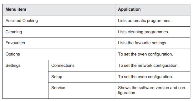 The Cleaning Function, Assisted Cooking and Specials can also be found under this Menu