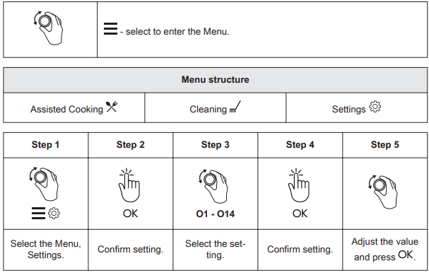 Step 1. Switch on the oven and select MENU