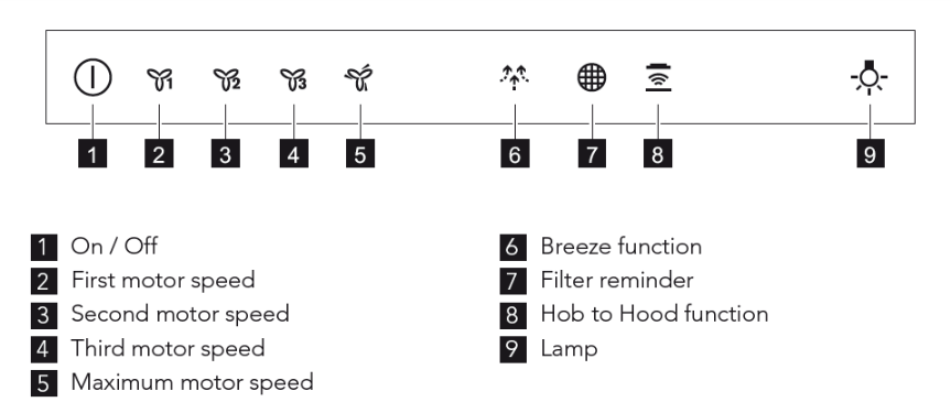 - Symbols and functions on your AEG cooker hood