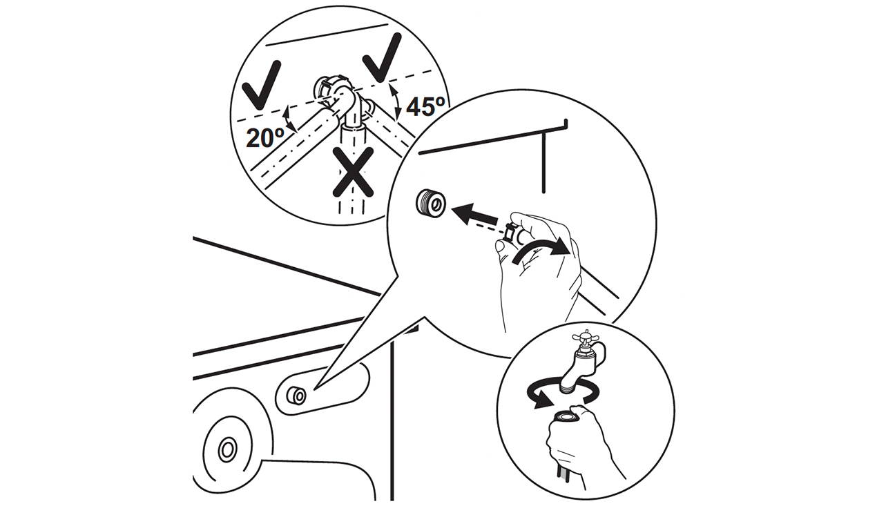 Step 2: Remove the inlet hose connection by turning anti-clockwise and straighten the hose or replace the hose