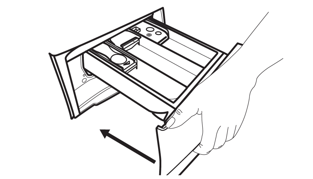Step 1: Remove the detergent dispenser drawer by pulling it firmly