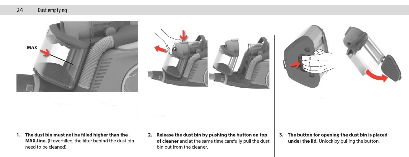 1. First, check to see if the vacuum cleaner dust container needs to be emptied