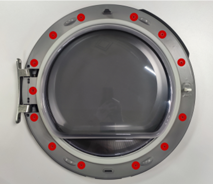 | 2 | Unscrew the 13 perimetral screws that attach the inner door frame. |  |