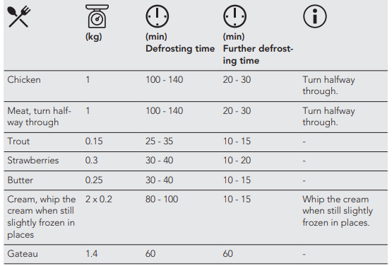 The defrost function is a great option when you want to reduce the defrosting time of your food. The time of defrosting can be reduced by as much as 50% when compared with food being defrosted on a kitchen worktop. No heat is used in the oven while the fan circulates room temperature air (30°C) around the food which gives an even and quicker defrosting result.